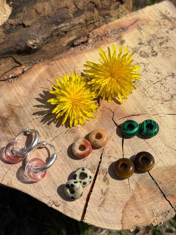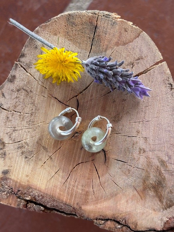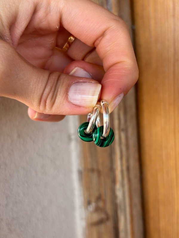 Argollas 1.5cm de diámetro de plata 925 con dona de piedra natural.
