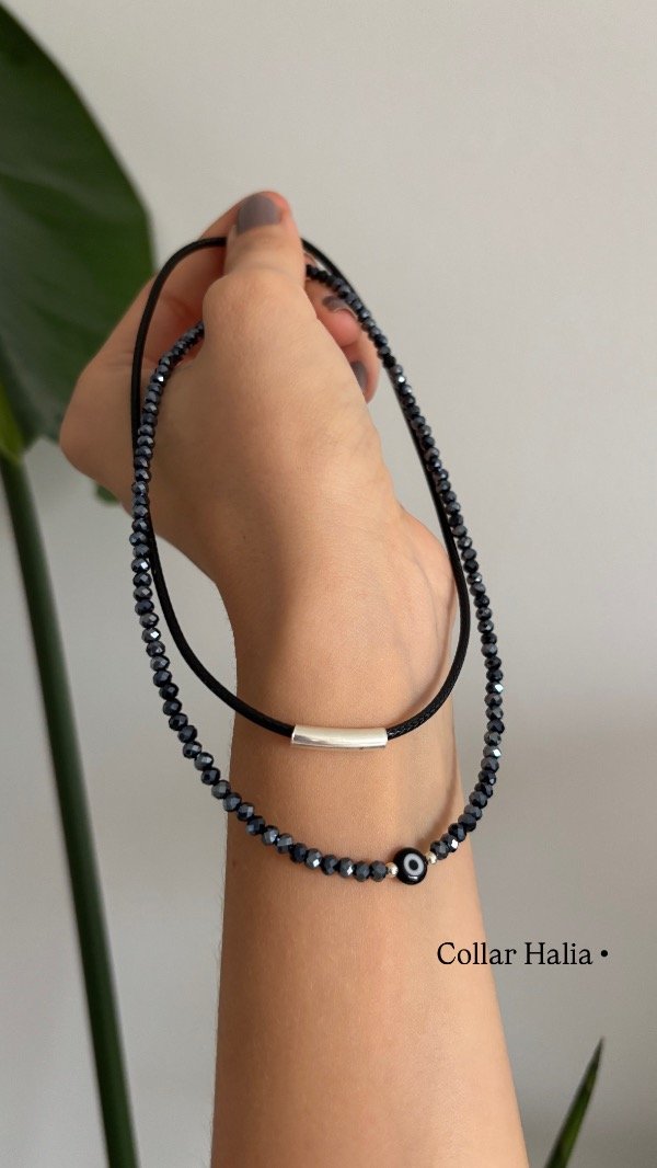 Chocker 35cm con detalles en plata 925. Con cadena de alargue de 5cm.