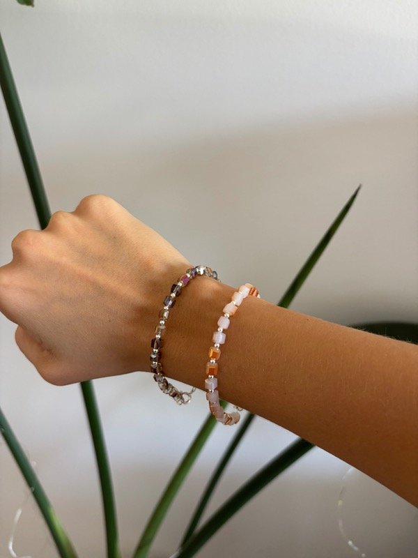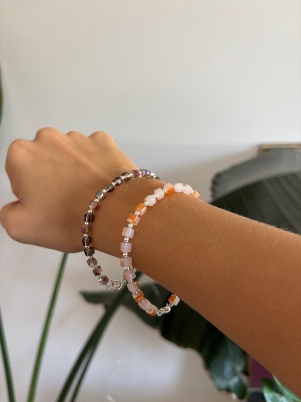 Cristales tornasol cuadrado + bolitas en plata 925 con engarces.